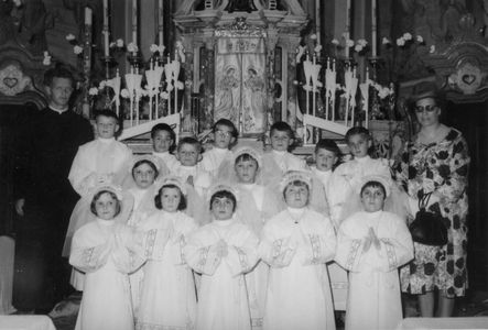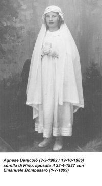 Maria Venzo, Venzo, a la primera comunión. Luego esposa de Rino Denicolò.